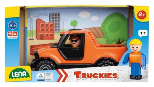 Truckies Pickup z kvalitního plastu a velmi pevnou stavbou. Plně mechanicky funkční. Obsahuje odklopitelnou kabinu s aktivním panáčkem. Vyrobeno v ČR