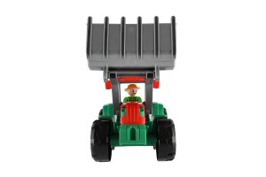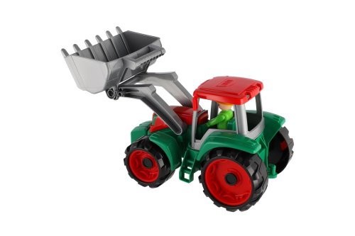 Traktor Truxx je vyroben z kvalitního plastu. Hračka má velmi pevnou stavbu. Traktor je velký 35 cm. Je plně mechanicky funkční. Obsahuje odklopitelnou kabinu s aktivním panáčkem. Vhodné od 2 let.