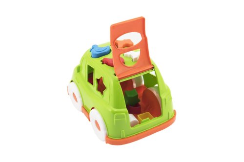 Vkládačka v podobě autíčka 2v1 vhodná pro děti od 12 měsíců. Roztomilý vzhled autíčka si děti zamilují. Vkládáním kostiček v podobě geometrických tvarů a zvířátek se u dětí rozvíjí psychomotorické schopnosti.