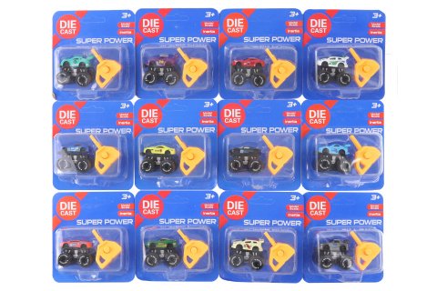 Kovové autíčko o rozměru cca 4 x 3,5 cm s vystřelovacím zařízením. Rozměr balení cca 11,5 x 10,5 x 4 cm. Věk 3+
