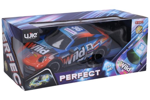 Auto Wild svítící RC na dálkové ovládání. Rozměry 26x11x6,5 cm. TRY ME tlačítko v obalu se světelnými efekty auta. Frekvence 27MHz. Světelné efekty povrchu auta. 4xAA baterie do auta, 2xAA do ovladače nejsou součástí. Přepínač ON/OFF na spodní straně auta. 2xAG13 neměnitelné v TRY ME tlačítku obalu, nutné odpojit kabel z auta při vybalování.