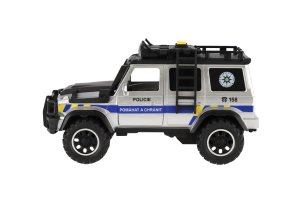 Staň se skutečným hrdinou a vydej se na misi s policejním vozidlem Záchranáři 112. Tento robustní terénní vůz se zvukem, blikajícími světly a funkčními dveřmi potěší každého malého strážce zákona. Realistické efekty: stisknutím tlačítka na střeše aktivuješ zvuky sirény a blikající maják. Pohon setrvačníkem – stačí natáhnout a pustit, auto vyrazí vpřed. Otevírací dveře: pro snadný přístup figurky nebo detailní hru. Rozměry balení 30 x 17 x 13 cm Vhodné pro děti od 3 let