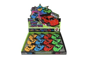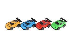 Závodní autíčko na setrvačník driftovací, tedy kontrolované smyky a klouzání bokem. Má speciální pneumatiky s nízkou trakcí a upravený podvozek pro lepší ovladatelnost při smycích. Rozměry výrobku 10 x 6 x 5 cm. Vhodné pro děti od 3 let.