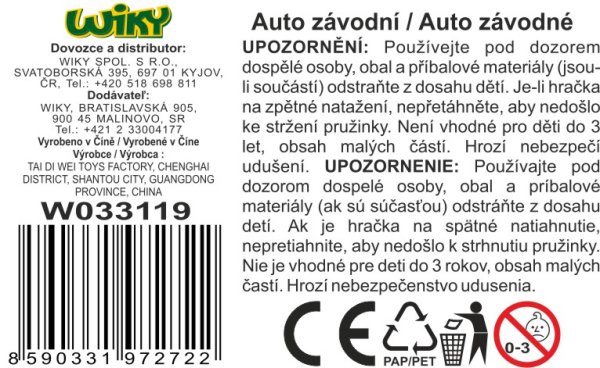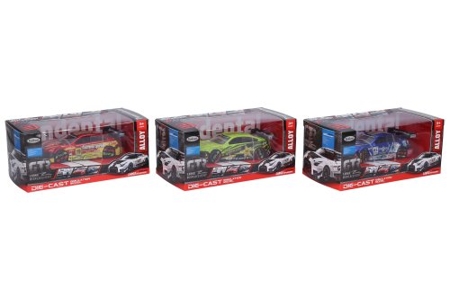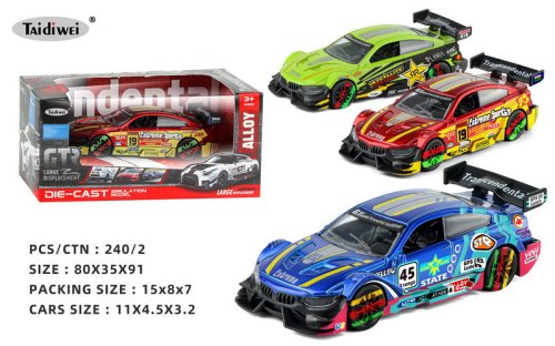 Auto závodní kovové. Rozměry 11x4,5x3,2 cm. Na zpětné natažení. 3 varianty - zelená, červená, modrá.