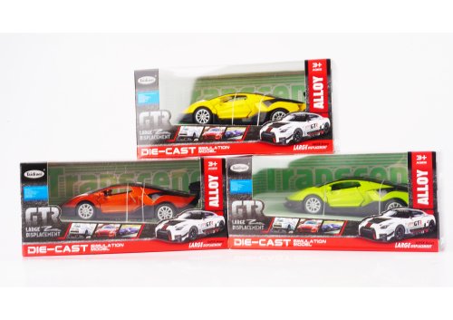 Auto závodní kovové na zpětné natažení. Přesné rozměry 12x5,2x3,2 cm. 3 varianty - červená, žlutá, zelená.