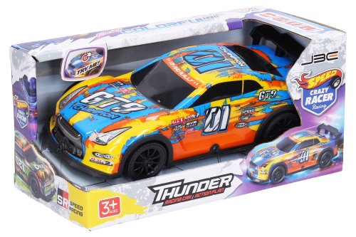 Auto závodní s efekty. Rozměry 19,5x8,5x5,5 cm. Na setrvačník. Světelné a zvukové efekty stiskem přední kapoty. 4xAG13 baterie součástí.