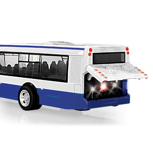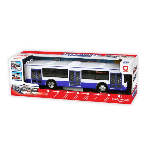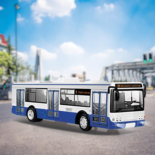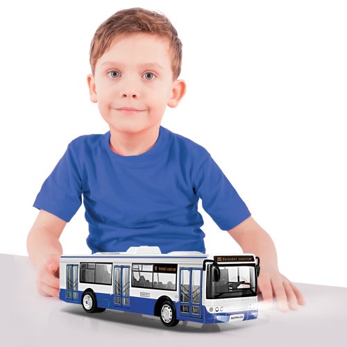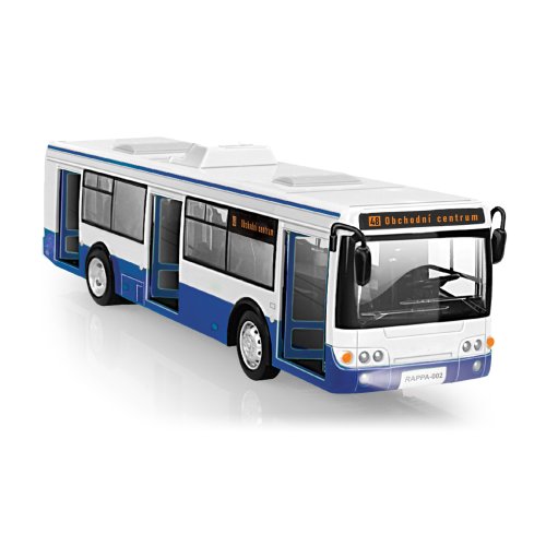 Originální autobus, který oznamuje stanice v českém jazyce, je rozhodně ten pravý dárek pro vaši jízdu! Vaše děti si ho zamilují! Dveře, lze manuálně otevřít a zavírají se pomocí tlačítka umístěného na střeše vozu. Při každém otevření se ozve hlášení, při zavření navíc blikají přední světla autobusu. Autobus v měřítku 1:43 je vyroben z plastu, jeho délka je 28 cm a vyžaduje použití 3 ks baterií LR44/AG13, které jsou jeho součástí. Autobus jezdí na zpětný chod. Tahle unikátní hračka nadchne všechny kluky i holky!