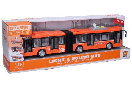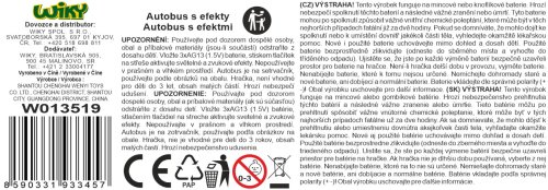 Autobus jezdí na setrvačník. Světelné a zvukové efekty. Efekty se aktivují 4 tlačítky na střeše autobusu.