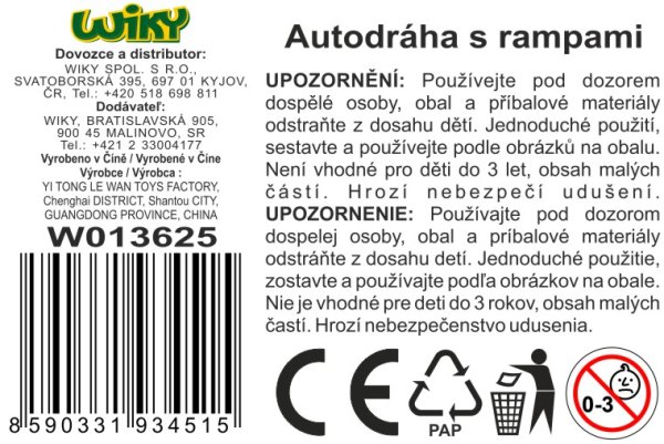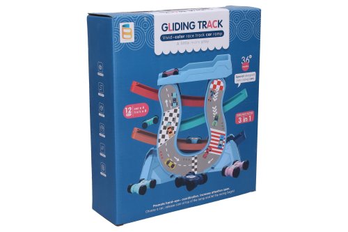Autodráha s rampami. Obsahuje 8 dílů dráhy a 4 mini-auta.