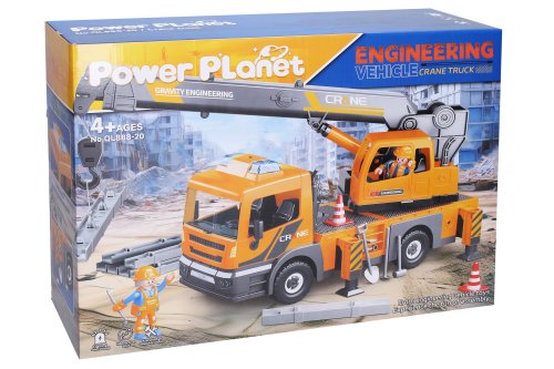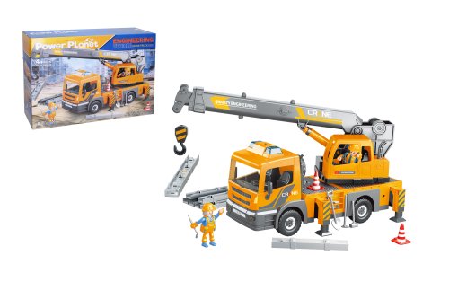 Autojeřáb s efekty, stavebnice. Velikost jeřábu 41 cm. Pohyblivé rameno jeřábu. Světelné a zvukové efekty. Baterie 2xAAA není součástí balení.