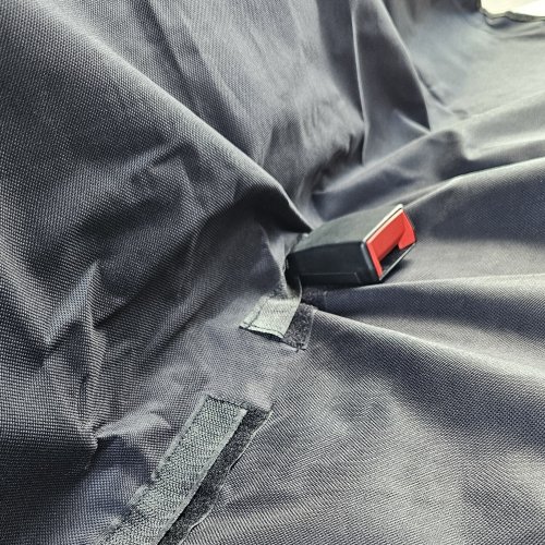 Jednoduché uchycení pomocí popruhů k opěrkám hlavy zajistí stabilní polohu deky i při pohybu zvířete. Kryje celou plochu zadních sedadel včetně prostoru mezi nimi, a poskytuje tak kompletní ochranu interiéru.