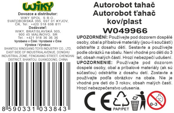 Autorobot tahač. Rozměry 19,5x15 cm. Transformuje se na nákladní auto. Obrázkový návod na složení na obalu. kov/plast