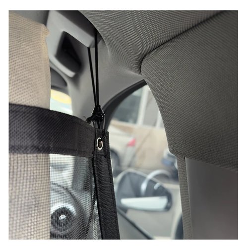 Černá elastická dělicí síť do auta k vymezení prostoru určeného pro psa od prostoru pro pasažéry vozu.