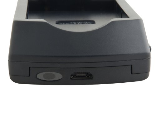 Nabíječka s Micro-USB vstupem pro baterie do fotoaparátů a videokamer.