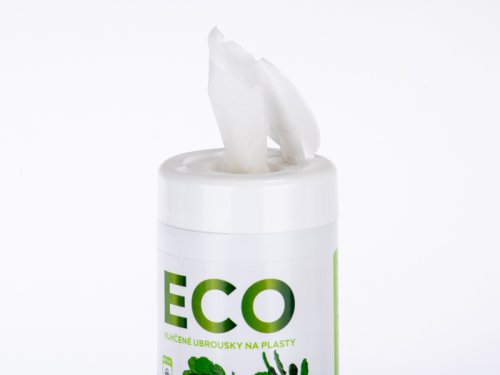 Přírodní, efektivní a ekologicky šetrné vlhčené ubrousky na čištění kancelářského vybavení, plastů. Balení 100 ks.