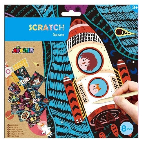 Kreativní zábava pro děti, to jsou škrabací obrázky. Nechte kluky i holky vzít do ruky dřevěné vyškrabávací pero a sledujte, jak se z černé plochy rodí krásný barevný obrázek. Děti tak rozvinou svou jemnou motoriku a kreativitu. Vyškrabávací pero je přizpůsobené dětem a škrábe pouze jemně. V sadě Avenir děti najdou osm obrázků.
