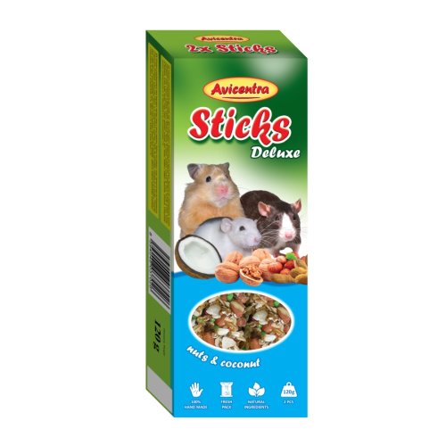 Avicentra Deluxe tyčinky s ořechy a kokosem pro křečky, potkany a myši jsou chutnou a voňavou pochoutkou, která zpestří každodenní jídelníček drobných hlodavců. Kombinace křupavých ořechů a exotického kokosu vytváří lákavou odměnu s přirozenou chutí, kterou si zvířata rychle oblíbí. Tyčinky zároveň podporují přirozené okusování a pomáhají zabavit vašeho mazlíčka.