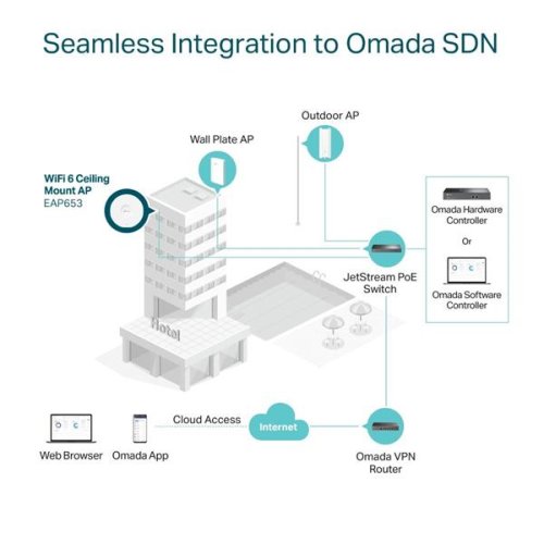 Centralizovaná správa cloudu: Vďaka integrácii do platformy Omada SDN môžete celú sieť spravovať lokálne alebo cez cloud cez webové rozhranie alebo aplikáciu Omada.