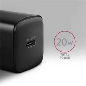 Kompaktní nabíječka do sítě AXAGON ACU-PD20 umožňuje rychlé nabíjení mobilních zařízení. Díky maximálnímu výkonu 20W dokáže nabíječka dobíjet telefony, tablety a další mobilní zařízení nejvyšší možnou rychlostí. Adaptér nabízí oboustranný USB-C konektor. Nabíječka je vybavena výstupem Power Delivery 3.0 / Quick Charge 4+ USB typu C, což umožňuje rychlé nabíjení smartphonů a tabletů výkonem až 20W. Nabíječka podporuje 20W PD nabíjení pro iPhone 12, 13, 14 a 15 a jejich modely Pro a Pro Max. Adaptér je dále kompatibilní s dalšími standardy rychlého nabíjení telefonů, jako jsou Apple iPhone, iPad, Samsung, Huawei, Honor, Xiaomi. Pokročilý systém ochran na výstupu nabíjecího adaptéru chrání nabíjené zařízení před poškozením. Funkce nabíječky také zajistí rozpoznání nabíjeného zařízení a zvolení optimální rychlosti a průběhu nabíjení. Tělo napájecího adaptéru má příjemný tvar a kompaktní velikost. Kombinace malých rozměrů a širokého rozsahu vstupního napětí dělá z této nabíječky ideálního pomocníka na cesty.