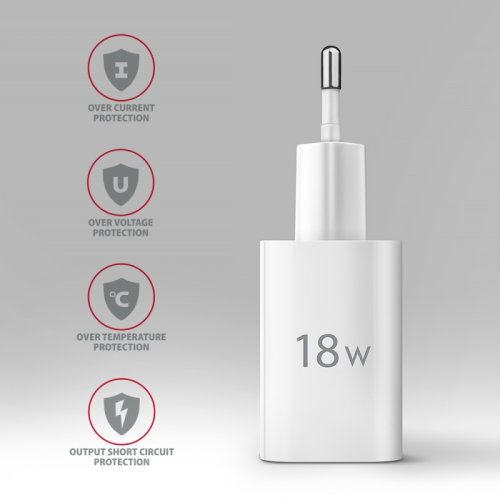 USB nabíječka do sítě AXAGON ACU-QC18W je určena pro nabíjení mobilních zařízení. Díky maximálnímu výkonu 18W dokáže nabíječka dobíjet telefony, tablety a další mobilní zařízení nejvyšší možnou rychlostí. Adaptér nabízí standardní USB-A konektor. Nabíječka je vybavena výstupem Quick Charge 3.0 USB typu A, což umožňuje rychlé nabíjení smartphonů a tabletů výkonem až 18W. Adaptér je také kompatibilní s dalšími standardy rychlého nabíjení telefonů, jako jsou Apple iPhone, iPad, Samsung, Huawei, Honor, Xiaomi, Motorola a dalších. Pokročilý systém ochran na výstupu nabíjecího adaptéru chrání nabíjené zařízení před poškozením. Funkce nabíječky také zajistí rozpoznání nabíjeného zařízení a zvolení optimální rychlosti a průběhu nabíjení. Tělo napájecího adaptéru má příjemný tvar a kompaktní velikost. Kombinace malých rozměrů a širokého rozsahu vstupního napětí dělá z této nabíječky ideálního pomocníka na cesty.