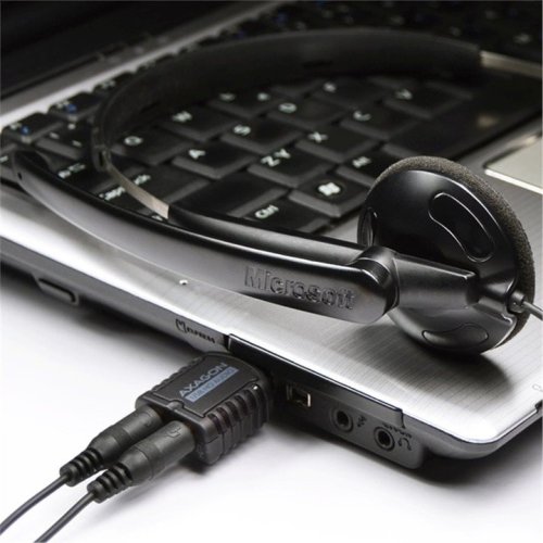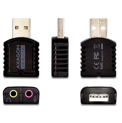 Externí zvuková karta pro připojení audio zařízení převádí digitální signál z USB rozhraní na standardní analogový audio signál.
