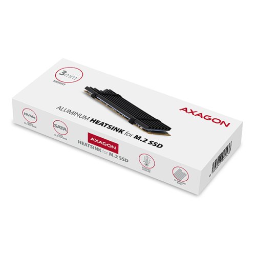 Univerzální heatsink lze použít na M.2 karty o rozměru 22 x 80 mm. Dvě dodávané teplovodivé podložky umožní montáž chladiče pro všechny jednostranné i oboustranné M.2 SSD disky.