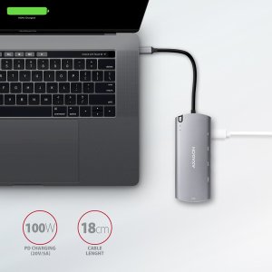 Dokovací stanice v hliníkovém provedení nabízí velké množství praktických portů. K počítači či notebooku se připojuje pomocí konektoru USB-C, který slouží k přenosu dat rychlostí až 5 Gb/s. K dokovací stanici lze skrze rozhraní HDMI připojit monitor s rozlišením až 4K při 30 Hz. Pro připojení periférií jsou přítomny dva USB 3.0 porty. Stanice taktéž nabízí USB-C Power Delivery až 100 W, který je určen pro napájení připojeného notebooku či tabletu pomocí vašeho originálního síťového adaptéru. Vysokorychlostní přístup k síti a internetu lze realizovat skrze přítomný gigabitový RJ-45 port. Uvnitř se dále nachází SATA M.2 slot pro M.2 (B / B+M key) SSD disk o velikosti 2230, 2242, 2260 či 2280. Díky tomu je možné stanici používat zároveň jako externí disk.