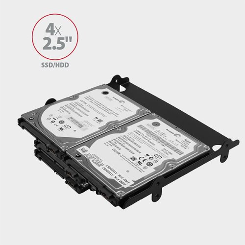 Kovový rámeček AXAGON RHD-435 umožňuje montáž až čtyř 2.5" HDD nebo SSD disků nebo dvou 2.5" disků a jednoho 3.5" disku do 5.25" pozice PC skříně. Tato redukce chytře vyřeší problém s umístěním 2.5" nebo 3.5" disků v různých typech počítačových skříní. V horní pozici lze použít standardní 2.5" SSD disky 7 mm i pevné disky 9.5 mm. Spodní pozice je určena pro standardní 3.5" pevný disk alternativně pro 2.5" SSD/HDD bez omezení výšky disku. Přesné otvory a dodávané šroubky zajistí snadnou a bezproblémovou montáž rámečku do počítačové skříně. Kovová konstrukce rámečku napomáhá odvodu tepla z disků.