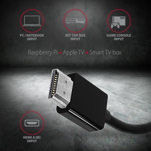 Díky vestavěnému microUSB konektoru pro dodatečné napájení lze adaptér připojit i k zařízení se slabší úrovní napájení HDMI výstupu, jako například Raspberry Pi, Apple TV, některé Smart TV boxy a další. Při připojení ke stolnímu PC nebo notebooku dodatečné napájení není potřeba.