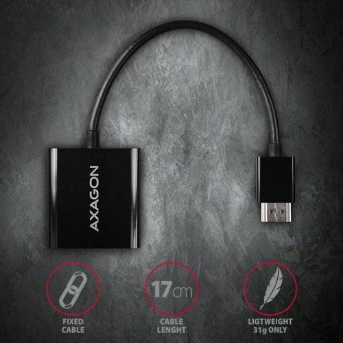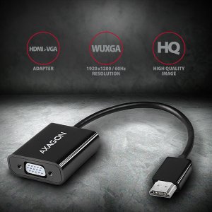 HDMI -- VGA aktivní adapter AXAGON RVH-VGAN s audio výstupem pro připojení staršího VGA monitoru/TV/projektoru k počítači nebo jinému zařízení s výstupem HDMI. Redukci lze použít i se set-top boxy nebo herními konzolemi Xbox a PlayStation.
