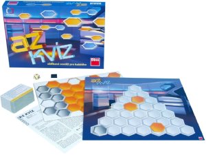 Hra AZ kvíz. Balení obsahuje 1 herní plán, 36 žetonů, 120 oboustranných karet s otázkami, 1 bodovou hrací kostku, 1 hrací kámen a 1 pravidla. Hra je určena pro 2 a více hráčů. Vhodné od 13 let.