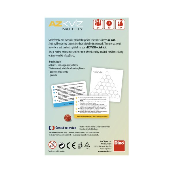 Oblíbená soutěžní vědomostní hra AZ kvíz nyní v cestovní verzi. 600 zcela nových otázek. Věk 13+
