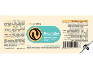 Doplněk stravy Nupreme B-complex Bioactive obsahuje komplex všech důležitých vitaminů skupiny B zpracovaných do směsi jejich biologicky aktivních forem.