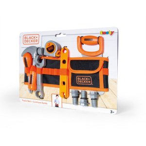 Opasek na nářadí s nastavitelným popruhem v licenci Black & Decker. Součástí 14 ks příslušenství: pila, šroubovák, kladivo, kombinovaný klíč, metr, 3 šrouby, 3 ploché spojky a 3 matice. S odkládací kapsou. Rozměry: 44 x 10 x 6 cm.