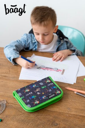 • Klasický školní jednopatrový penál s dvěma chlopněmi.