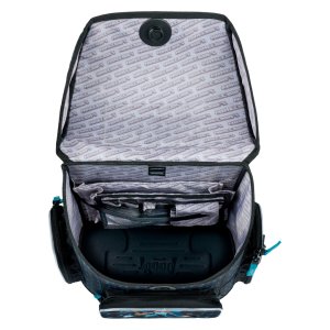 • Uvnitř aktovky je průhledná kapsa s rozvrhem a vnitřní organizér umožňující rovnoměrné rozložení hmotnosti.
