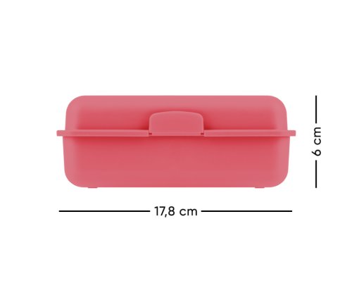 • Plastový box na svačinu v růžové barvě.