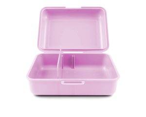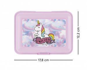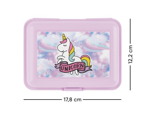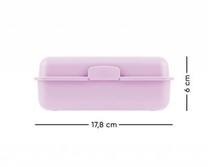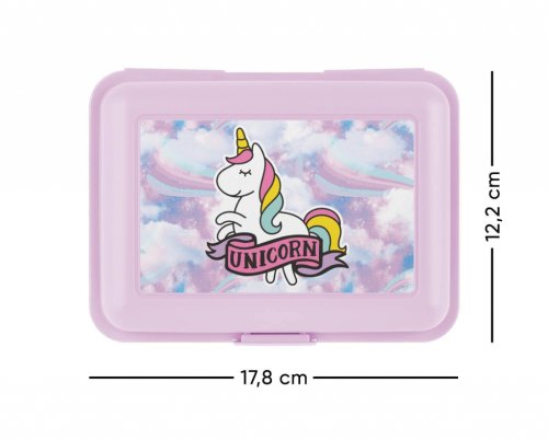 • Plastový box na svačinu. • Box má uzavírání na jeden zámek a obsahuje dělicí přepážku. • Nedoporučujeme mýt v myčce