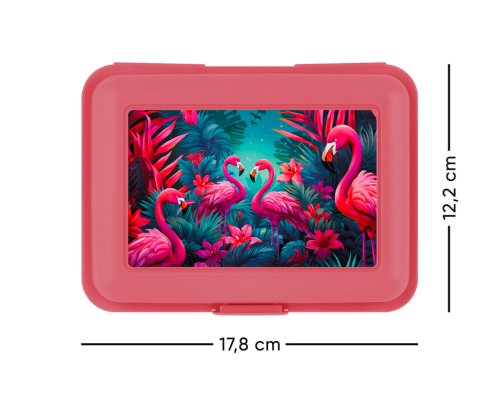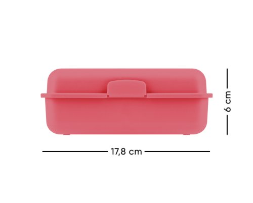 • Plastový box na svačinu v růžové barvě.
