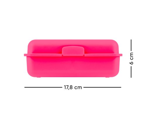 • Plastový box na svačinu. • Box má uzavírání na jeden zámek a obsahuje dělicí přepážku. • Nedoporučujeme mýt v myčce