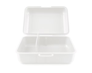 • Plastový box na svačinu v bílé barvě.