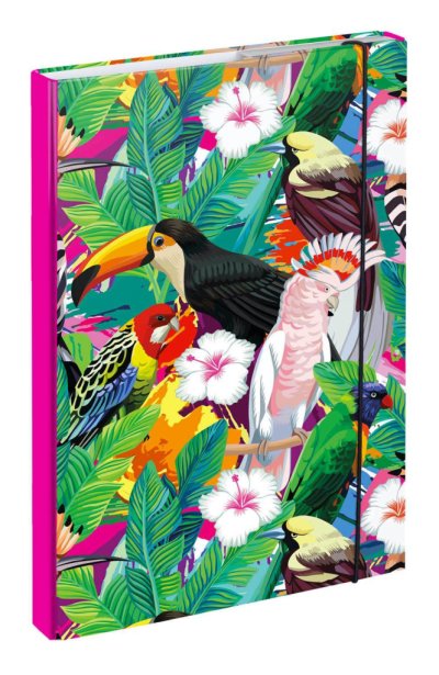 • Ochranné desky na úschovu sešitů či jiných dokumentů, včetně vnitřní klopy proti vypadnutí, zajištěné gumičkou.