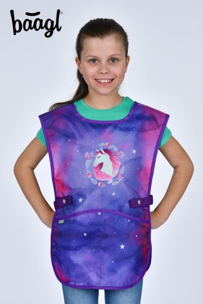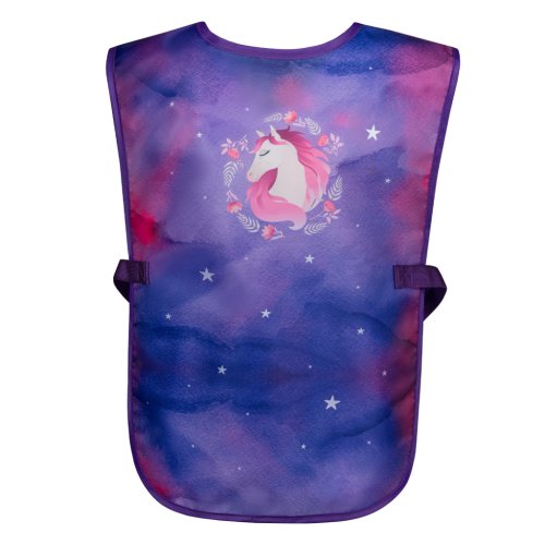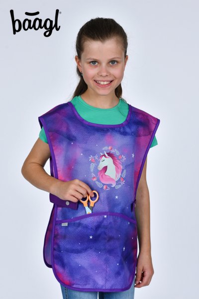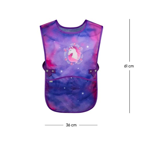 • Dětská zástěra na výtvarnou výchovu, pracovní činnosti a další kroužky. • V dolní části zástěry jsou dvě kapsy. • Vyrobeno z omyvatelného materiálu.