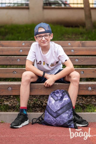 Sáček na cvičky nebo přezůvky z pevného omyvatelného materiálu.