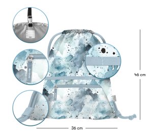 • Praktický sáček s kapsou na zip je vhodný nejen na přezůvky do školy, ale také na cesty, do města, na sportovní či jiné volnočasové aktivity.