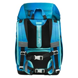 • Ergonomicky tvarovaná záda doplňují plně nastavitelné ramenní popruhy s prodyšným polstrováním, odnímatelný bederní pás a hrudní popruh, které zaručují maximální komfort, stabilitu a správné rozložení zátěže na dětských zádech.