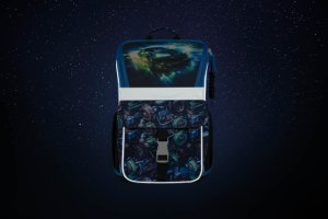 • Uvnitř aktovky je průhledná kapsa na rozvrh a vnitřní organizér umožňující rovnoměrné rozložení hmotnosti, doplněný gumičkou pro fixaci.