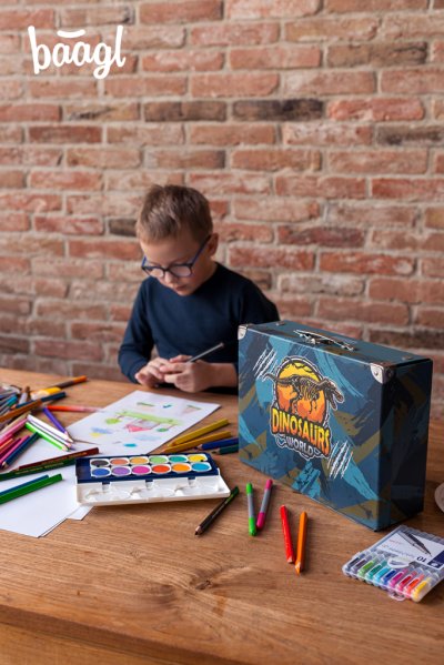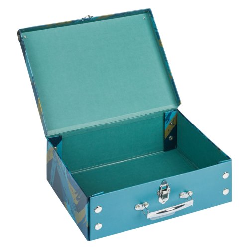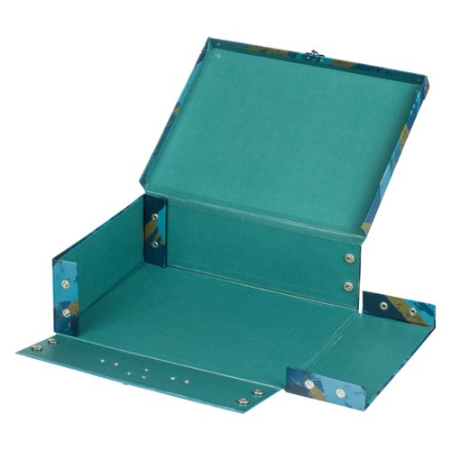 • Skládací kufřík z pevného laminovaného papíru s okovanými rohy.