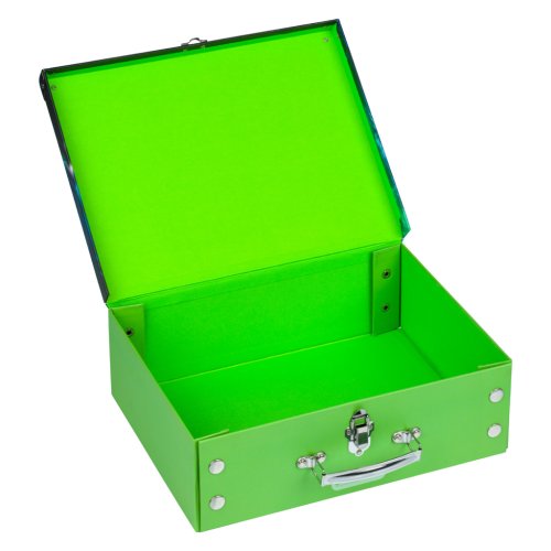 • Skládací kufřík z pevného laminovaného papíru s okovanými rohy. • Unikátní provedení s patentky, díky nimž se dají vždy znovu složit a rozložit. • Opatřené kovovým uchem a uzavíratelné na klasickou …