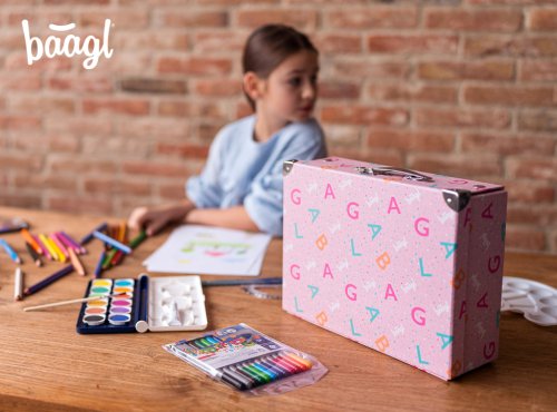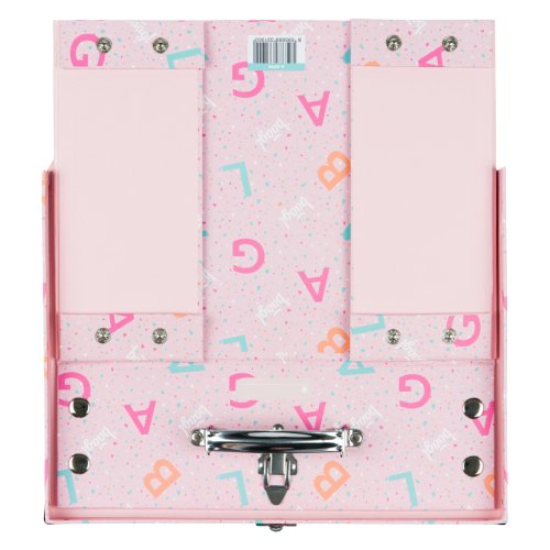 • Skládací kufřík z pevného laminovaného papíru s okovanými rohy.